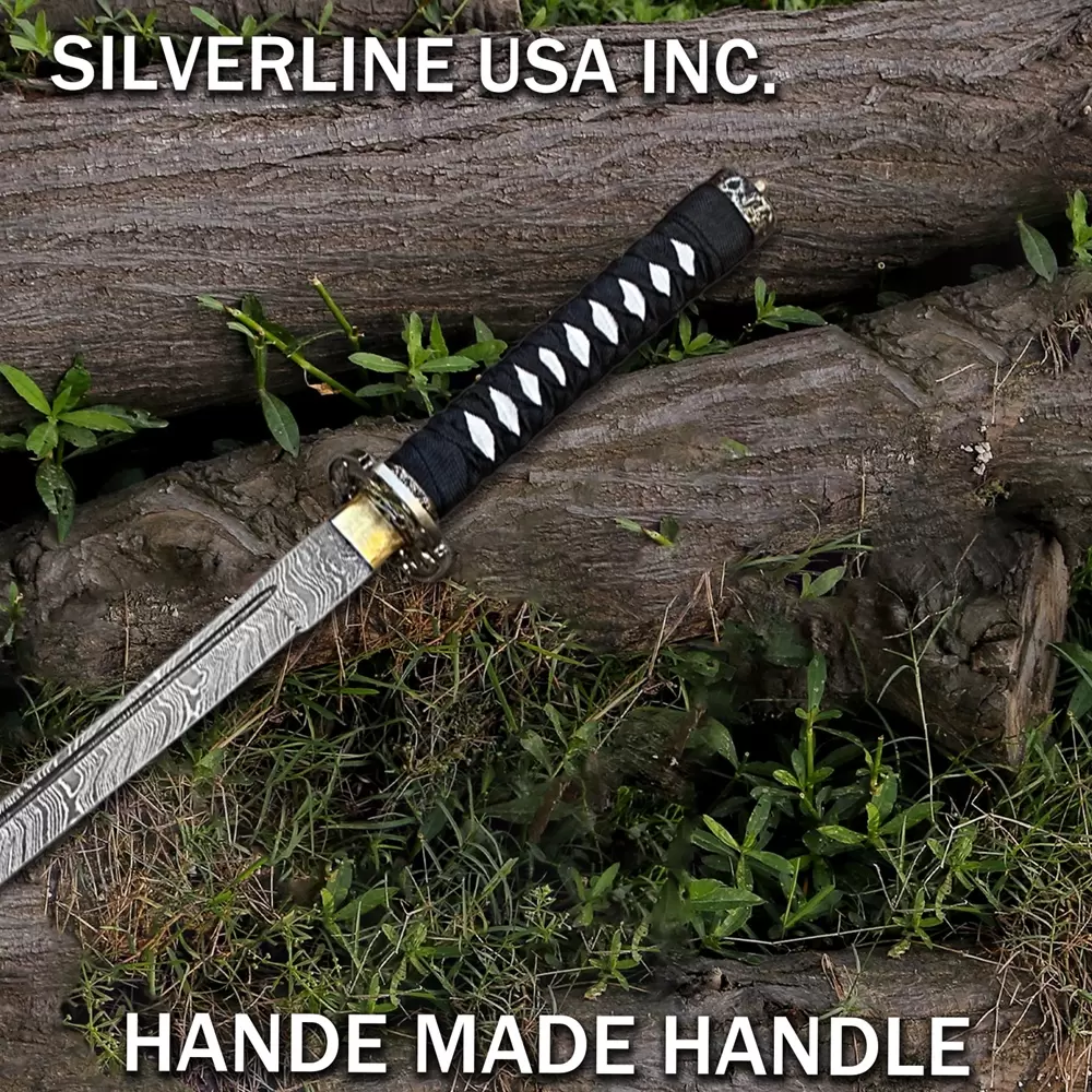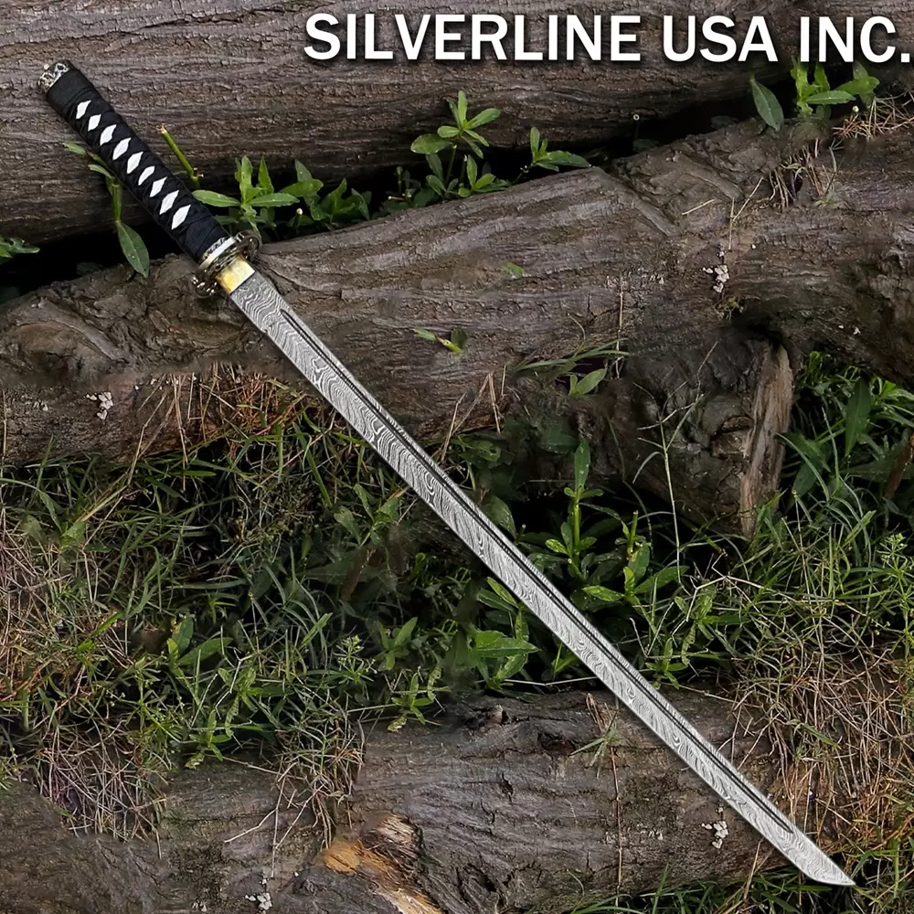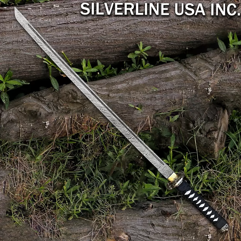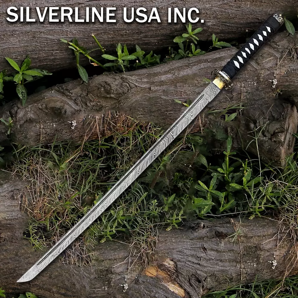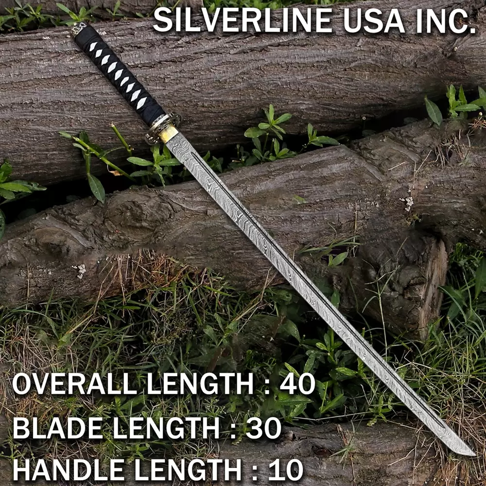 Damascus Handmade Sword With Leather Sheath- Full TangOverall Length 40 InchesBlade Length 30 InchesHandel Length 10 InchesReal Damascus Steel Blade forged with Carbon steel 1095 and 15n20With Leather Scabbard
