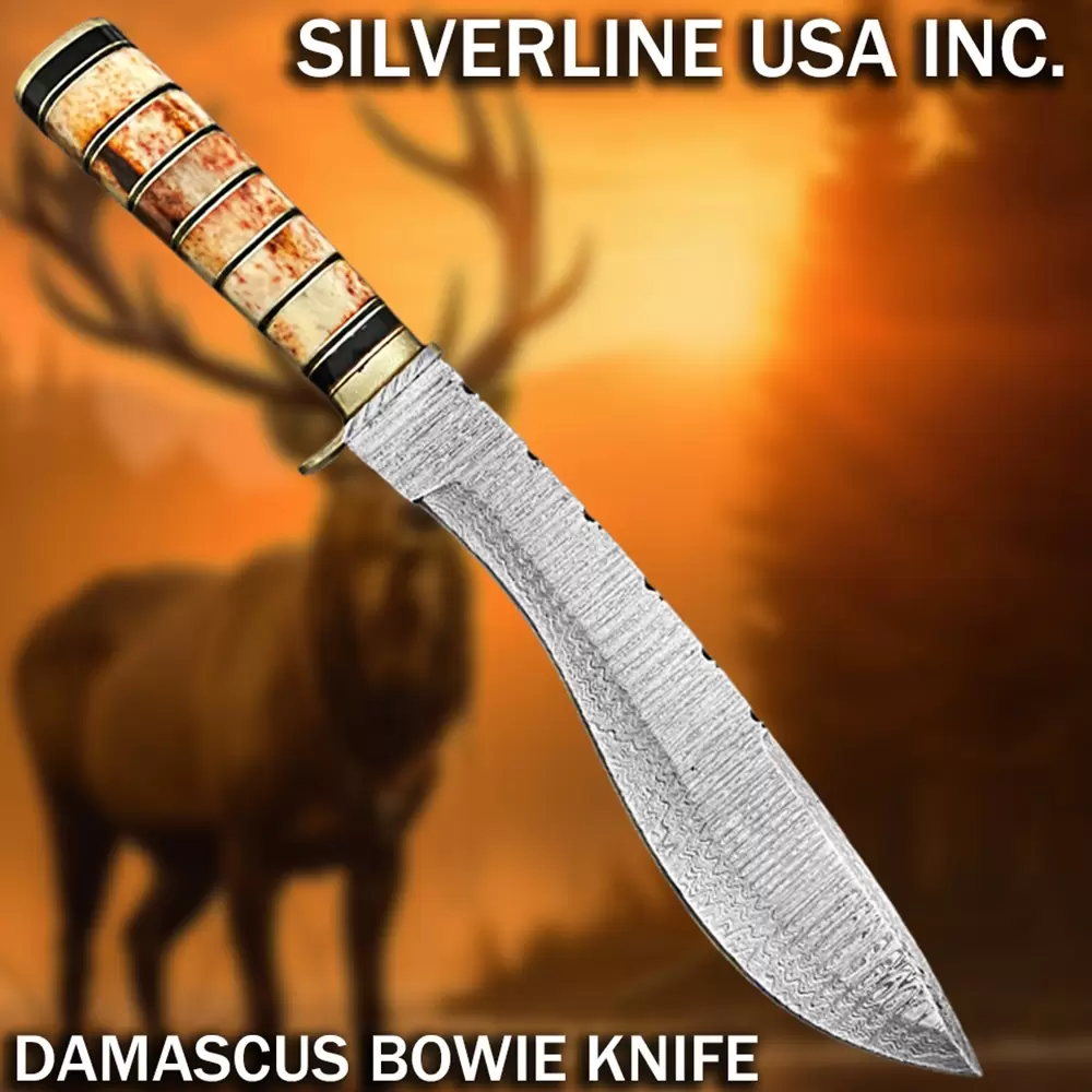 Made of real Damascus consist of 15n20 & 1095 Carbon Steel having hardness of 59HRC for Long lasting and durability of edge.