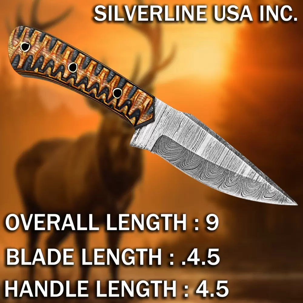 Made of real Damascus consist of 15n20 & 1095 Carbon Steel having hardness of 59HRC for Long lasting and durability of edge.