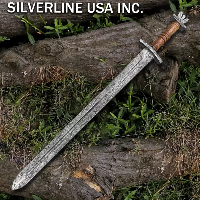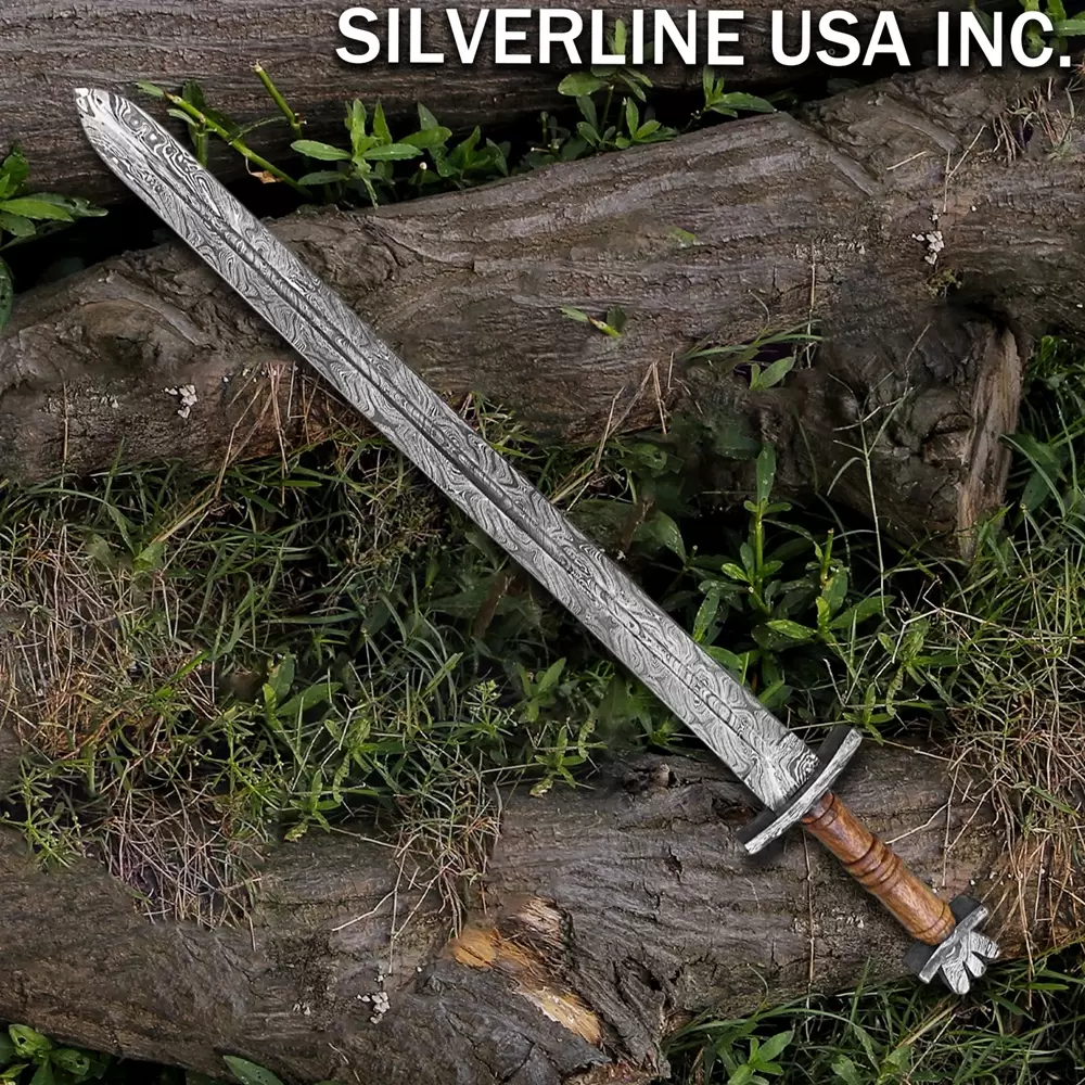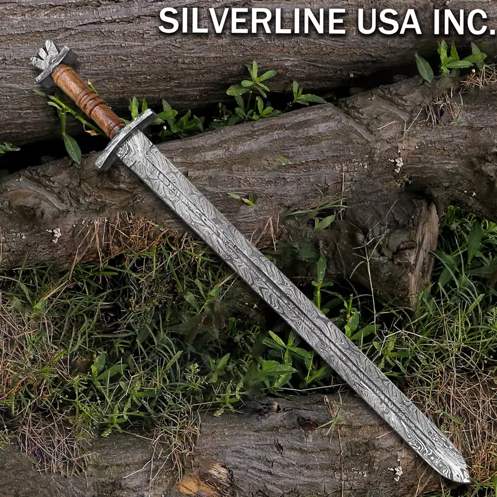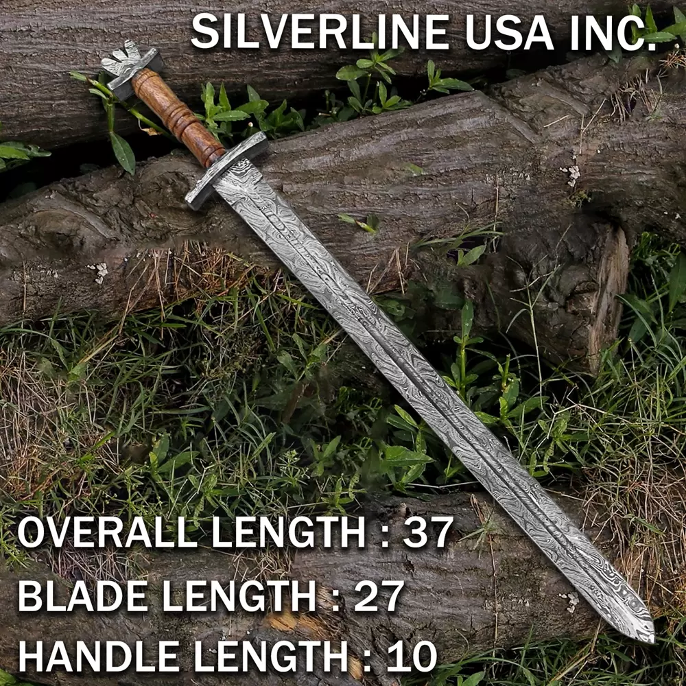 Damascus Handmade Sword With Leather Sheath- Full TangOverall Length 37 InchesBlade Length 27 InchesHandel Length 10 InchesReal Damascus Steel Blade forged with Carbon steel 1095 and 15n20With Leather Scabbard