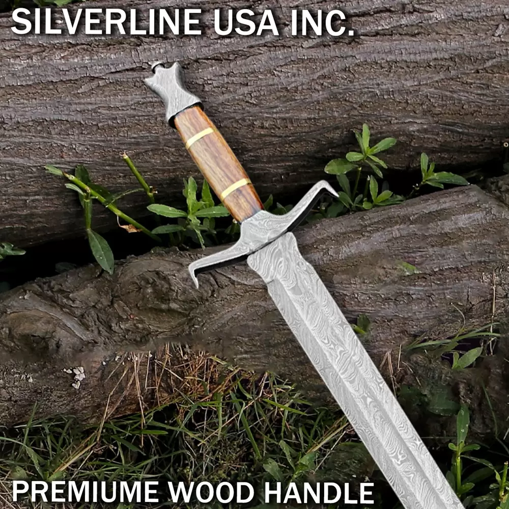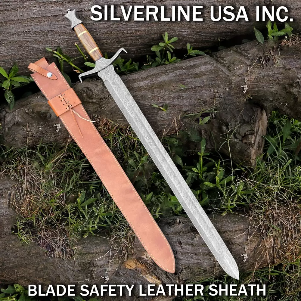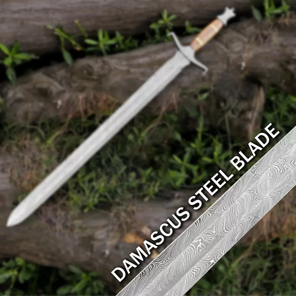 Damascus Handmade Sword With Leather Sheath- Full TangOverall Length 37 InchesBlade Length 27 InchesHandel Length 10 InchesReal Damascus Steel Blade forged with Carbon steel 1095 and 15n20With Leather Scabbard