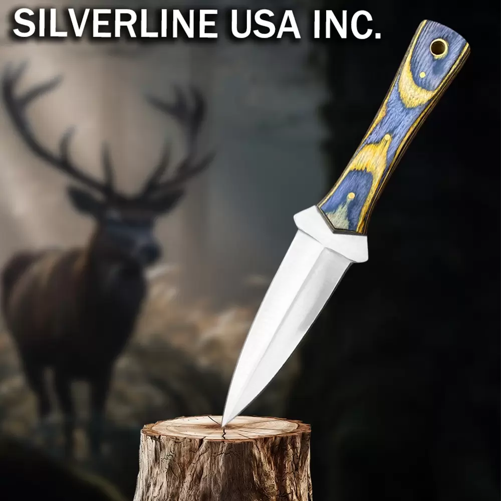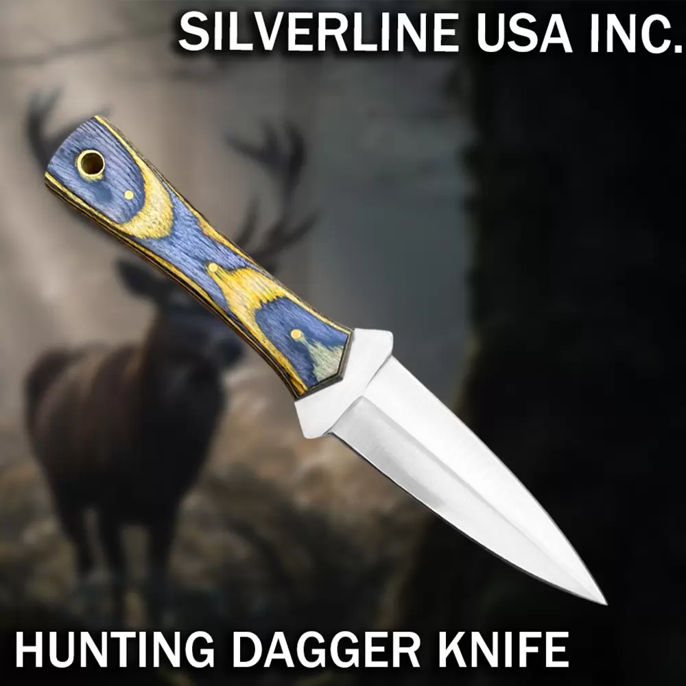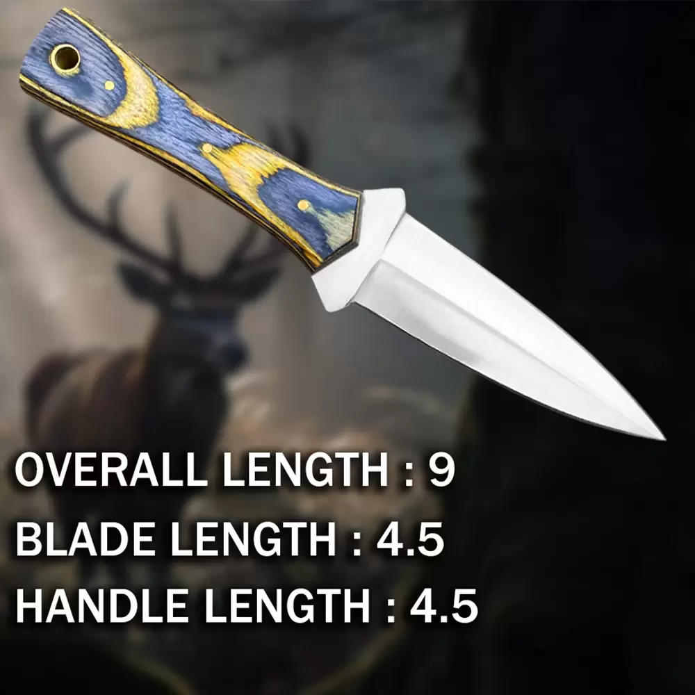 Stainless Steel DaggerOverall Length 9"Blade Length 4.5"Handle Length 4.5"Blade Material:Stainless Steel BladeHandle Material:Pakka Wood handle.Leather Sheath: Available With Genuine Leather Sheath.
