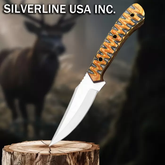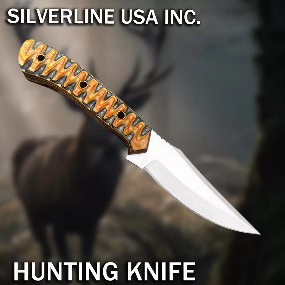 Stainless Steel Skinner KnifeOverall Length 9"Blade Length 4.5"Handle Length 4.5"Blade Material:Stainless Steel BladeHandle Material:Pakka Wood Yellow & Black handle.Leather Sheath: Available With Genuine Leather Sheath.
