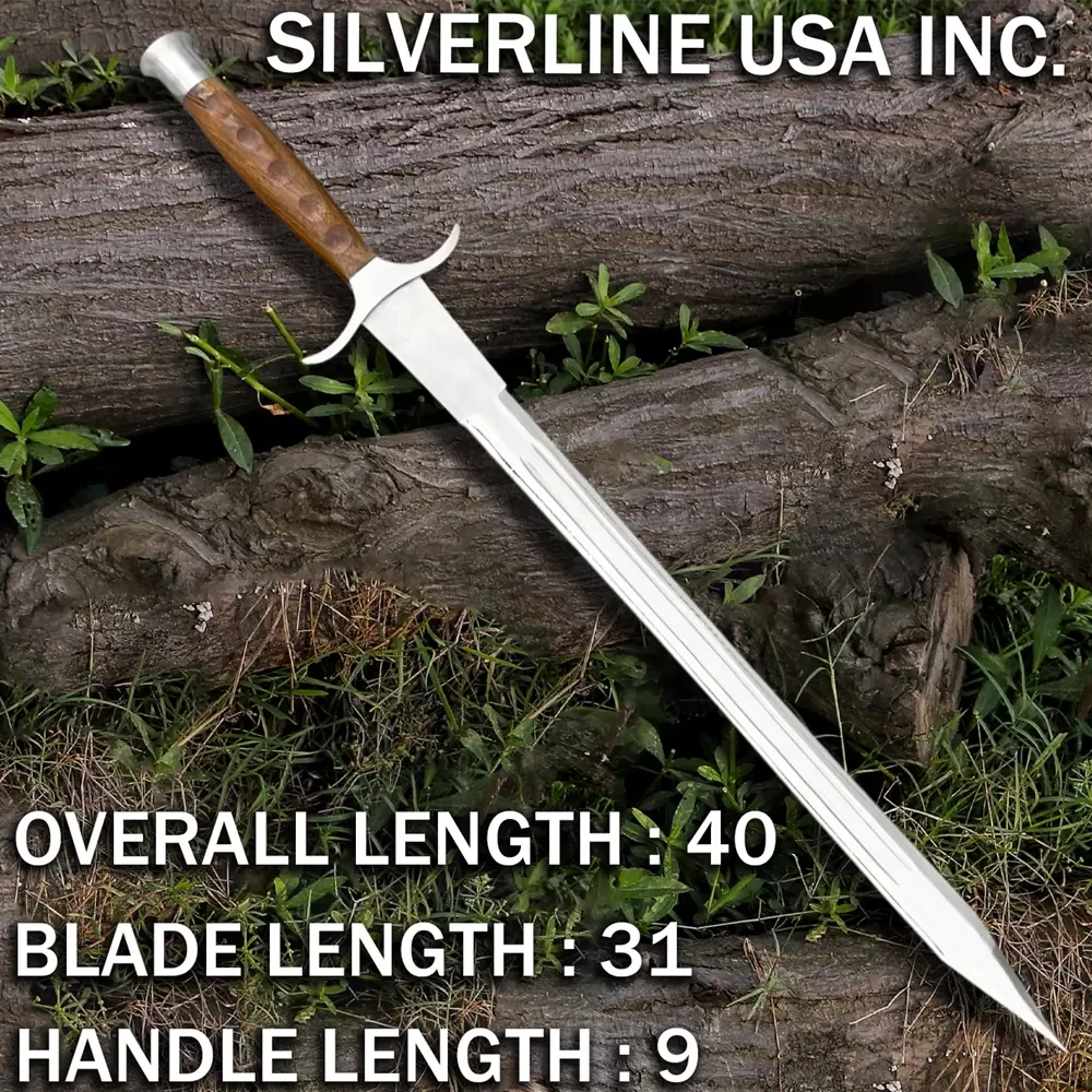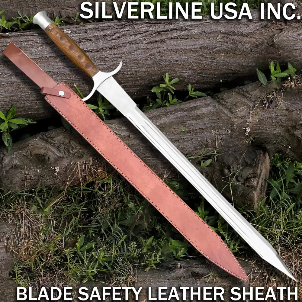 Stainless Steel Swords Blade Length 31"Handel Length 9"Blade Material Stainless Steel with black coatingWood Handle Leather Sheath Available