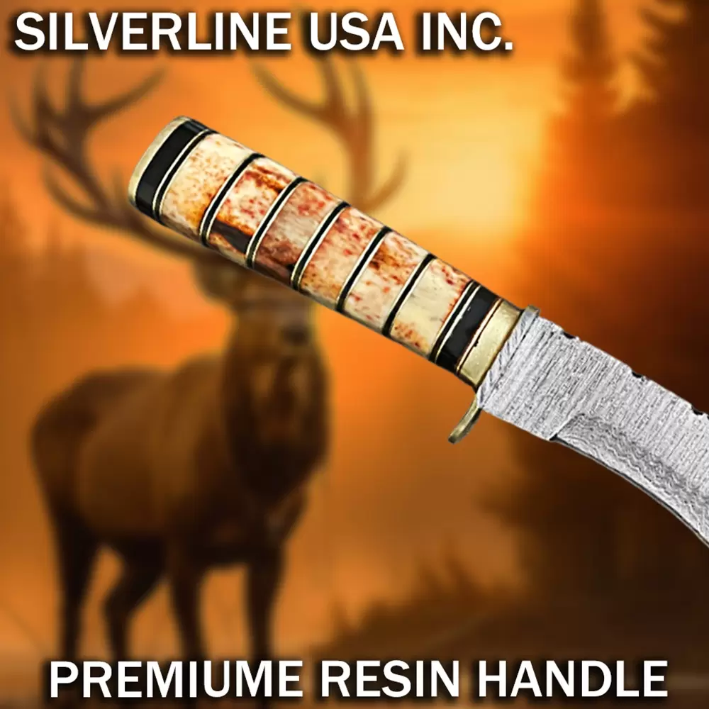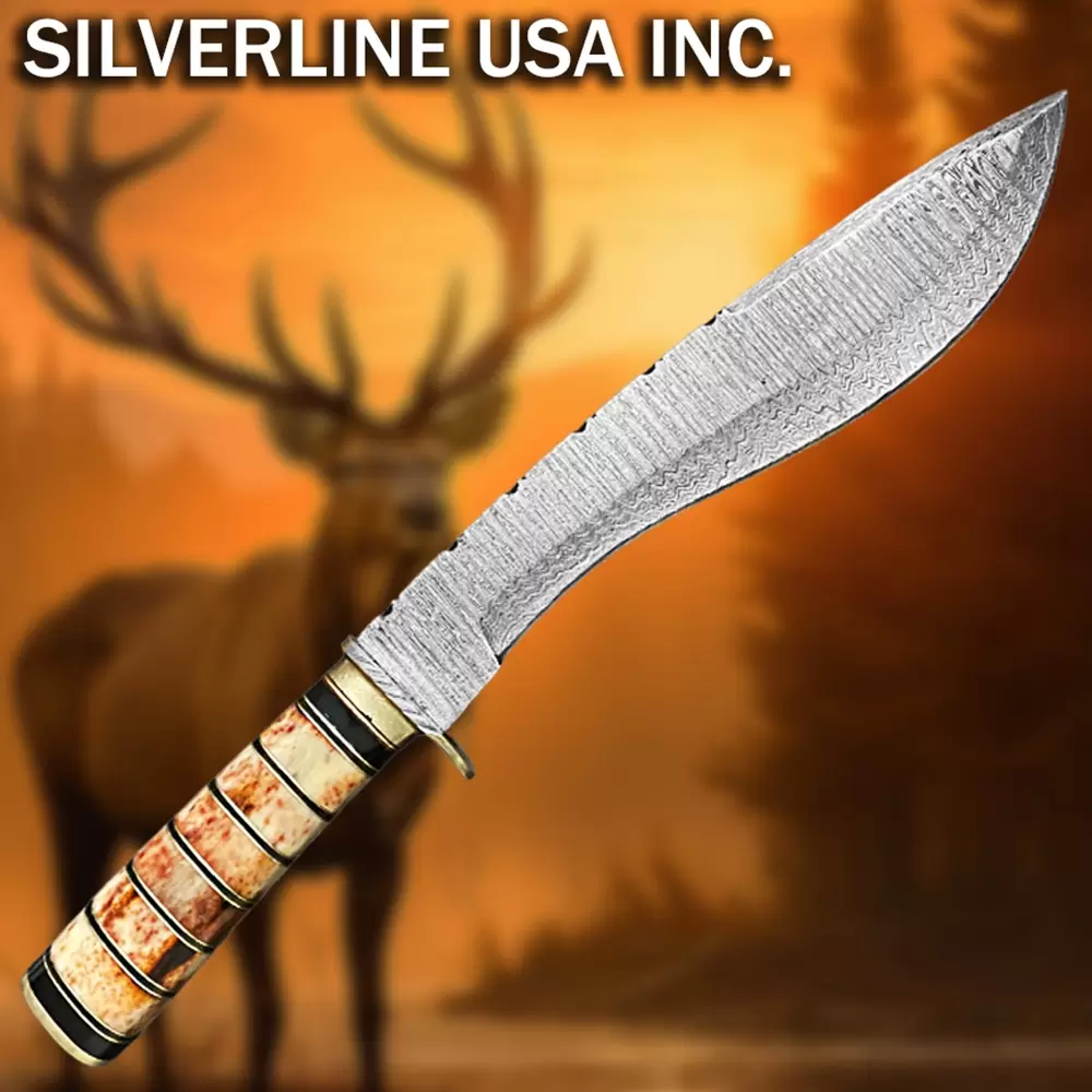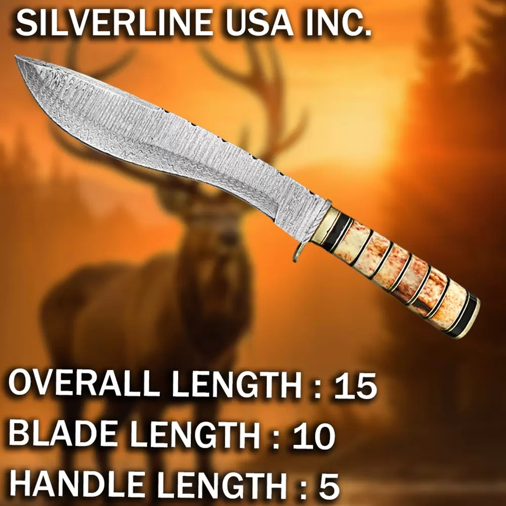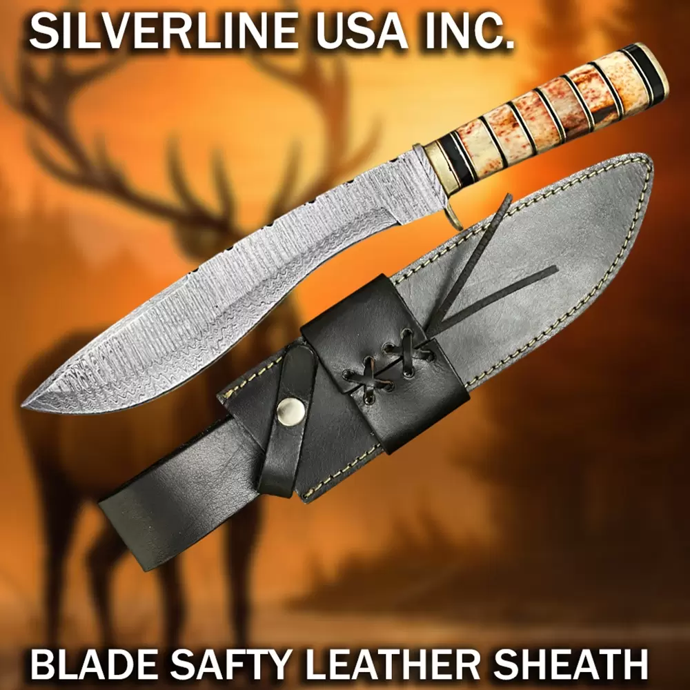 Made of real Damascus consist of 15n20 & 1095 Carbon Steel having hardness of 59HRC for Long lasting and durability of edge.