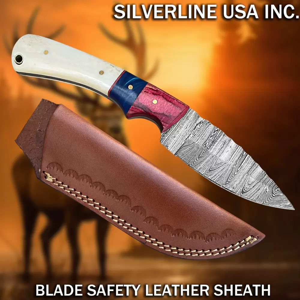 Made of real Damascus consist of 15n20 & 1095 Carbon Steel having hardness of 59HRC for Long lasting and durability of edge.