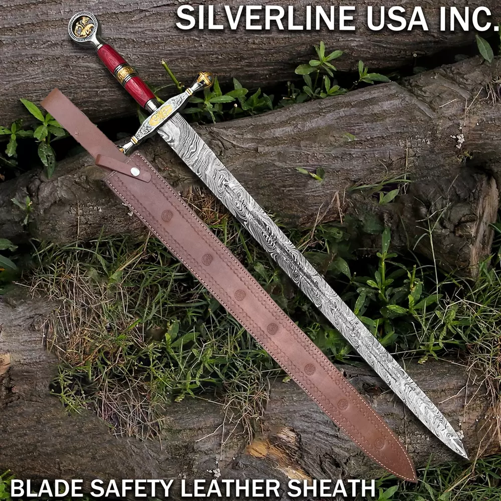 Damascus Handmade Sword With Leather Sheath- Full Tang