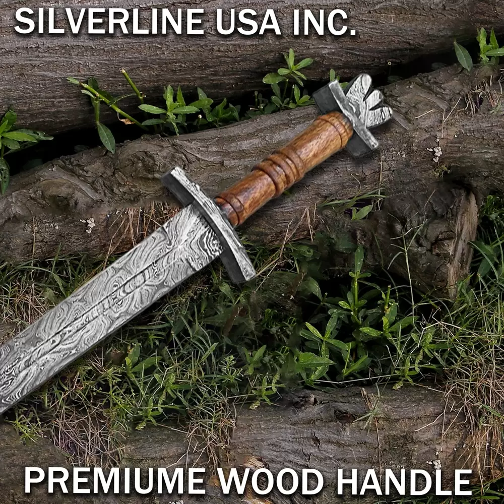 Damascus Handmade Sword With Leather Sheath- Full TangOverall Length 37 InchesBlade Length 27 InchesHandel Length 10 InchesReal Damascus Steel Blade forged with Carbon steel 1095 and 15n20With Leather Scabbard