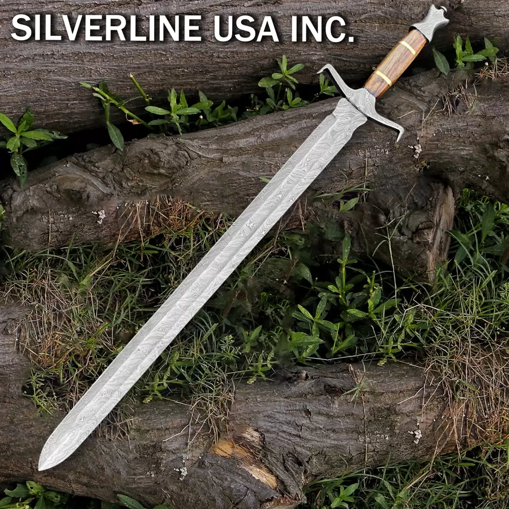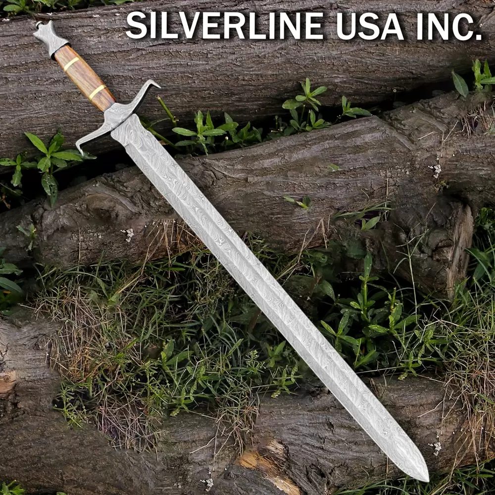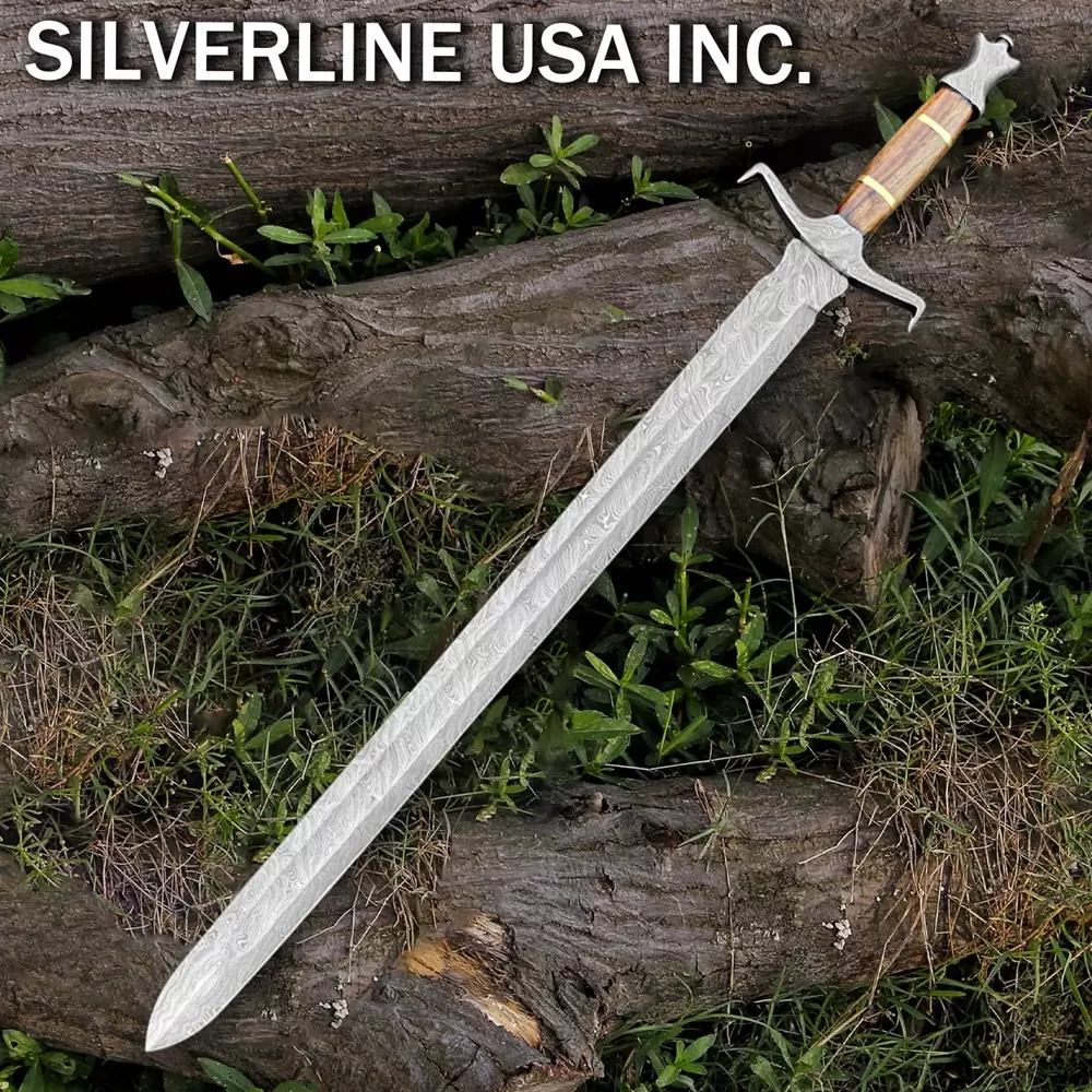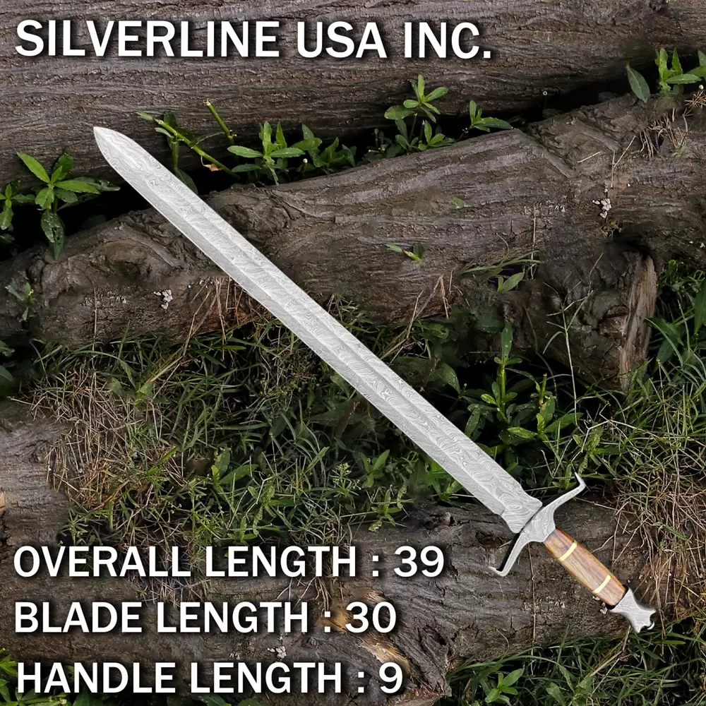 Damascus Handmade Sword With Leather Sheath- Full TangOverall Length 37 InchesBlade Length 27 InchesHandel Length 10 InchesReal Damascus Steel Blade forged with Carbon steel 1095 and 15n20With Leather Scabbard