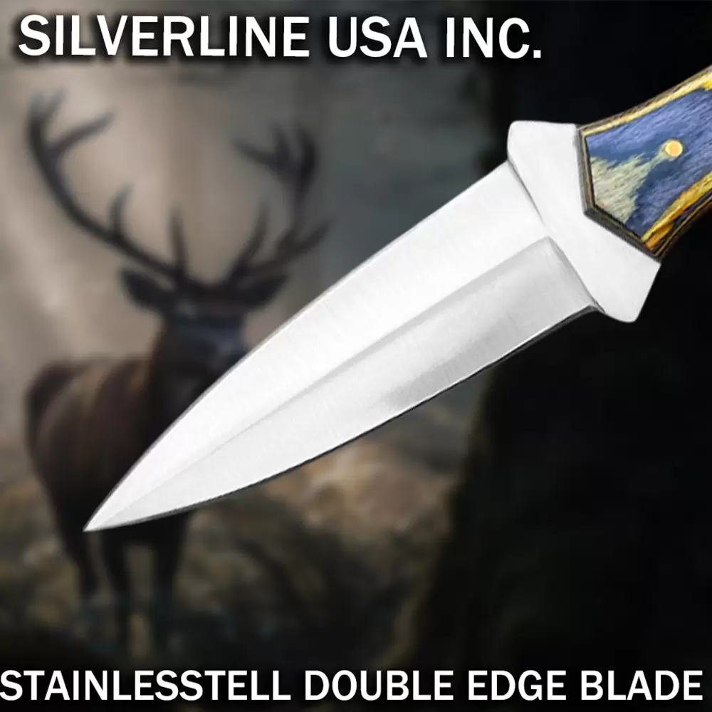 Stainless Steel DaggerOverall Length 9"Blade Length 4.5"Handle Length 4.5"Blade Material:Stainless Steel BladeHandle Material:Pakka Wood handle.Leather Sheath: Available With Genuine Leather Sheath.