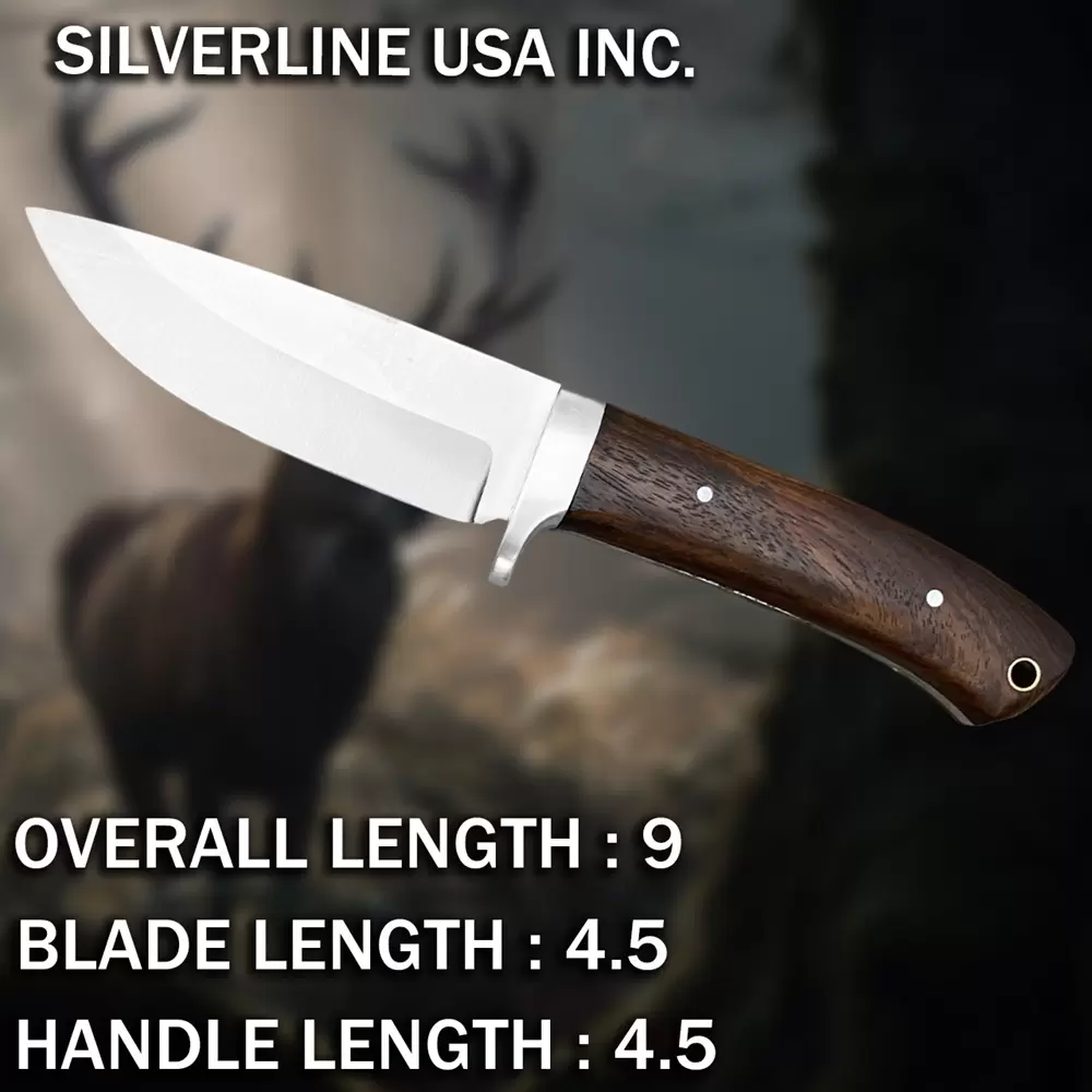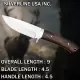 Overall Length 9"Blade Length 4.5"Handle Length 4.5"Blade Material:Stainless Steel BladeHandle Material:Black Micarta handle.Leather Sheath: Available With Genuine Leather Sheath.