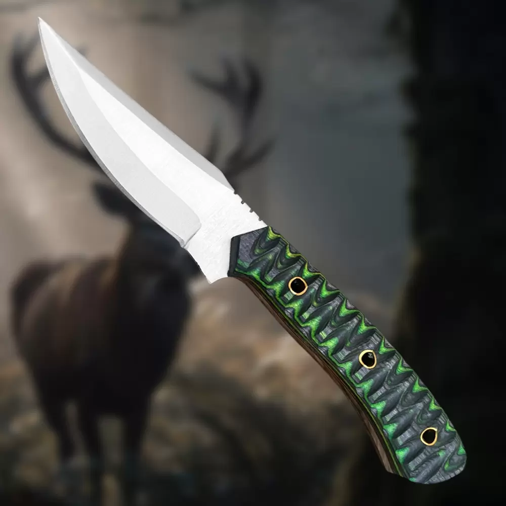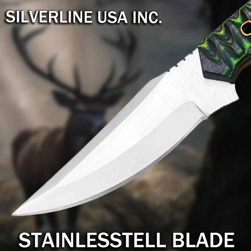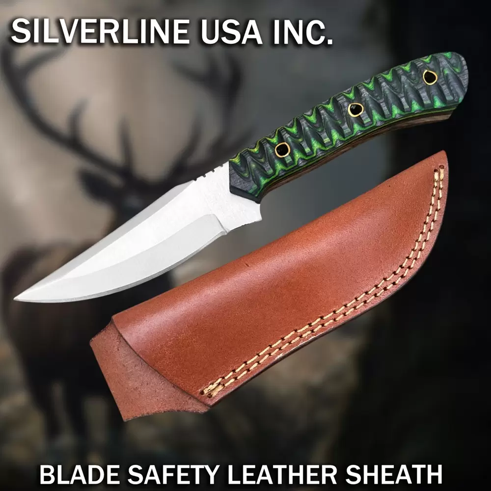 Stainless Steel Skinner KnifeOverall Length 9"Blade Length 4.5"Handle Length 4.5"Blade Material:Stainless Steel BladeHandle Material:Pakka Wood Green & Black handle.Leather Sheath: Available With Genuine Leather Sheath.