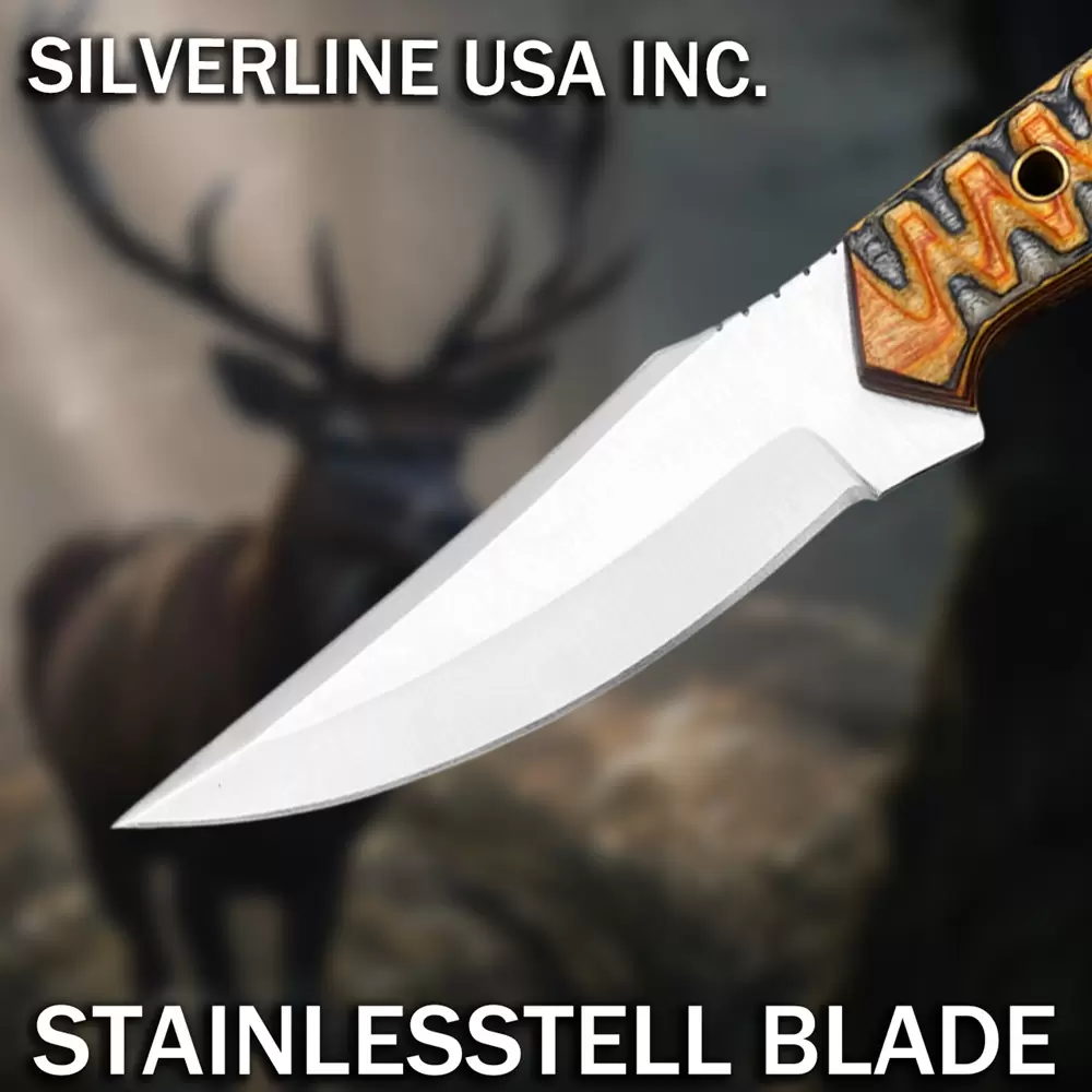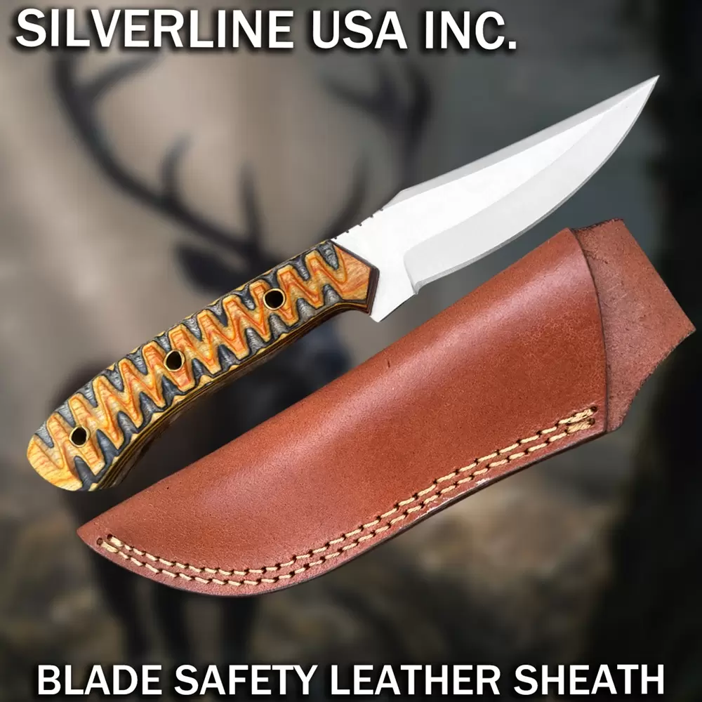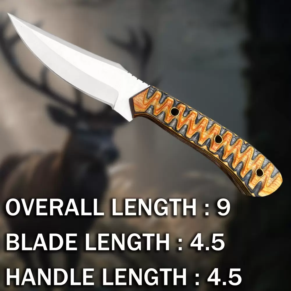 Stainless Steel Skinner KnifeOverall Length 9"Blade Length 4.5"Handle Length 4.5"Blade Material:Stainless Steel BladeHandle Material:Pakka Wood Yellow & Black handle.Leather Sheath: Available With Genuine Leather Sheath.